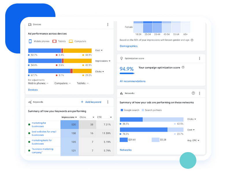 We integrate tracking and analytics tools to deliver detailed performance insights through your comprehensive dashboard.